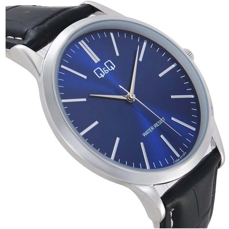ساعت مچی کیو اند کیو C08A-012PY مردانه، یک ساعت کلاسیک و ظریف برای استایل‌های رسمی و روزمره کاری است. این مدل با بند چرمی (یا چرم مصنوعی) مشکی و قاب نقره‌ای ۴۰ میلی‌متری، ظاهری رسمی و باوقار دارد. مجهز به موتور کوارتز ژاپنی بوده و مهم‌ترین ویژگی آن ضدآب بودن ۵۰ متری (۵ ATM) است که آن را برای استفاده روزانه مناسب می‌کند.