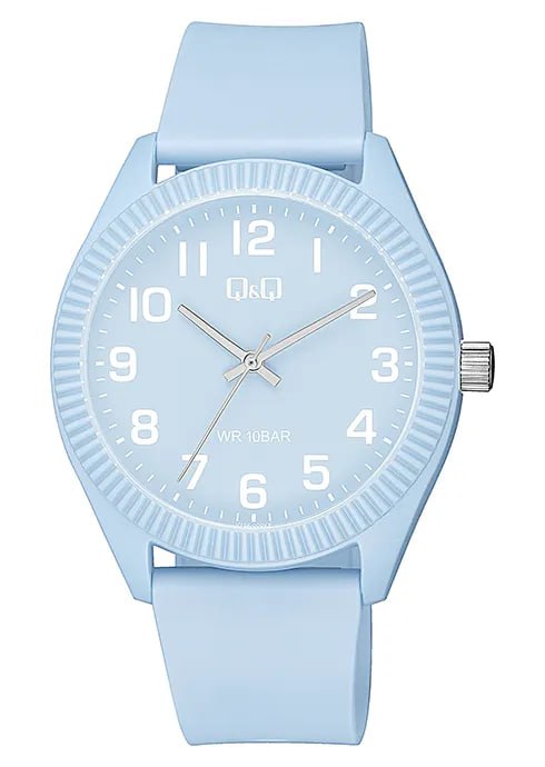 ساعت مچی کیو اند کیو V12A-009VY با رنگ آبی روشن و شاد، یک مدل یونیسکس (قابل استفاده برای خانم‌ها و آقایان) است که برای استایل‌های اسپرت و روزمره طراحی شده. قطر ۴۱ میلی‌متری و وزن بسیار سبک آن، راحتی زیادی را فراهم می‌کند. موتور این ساعت از نوع کوارتز ژاپنی بوده و در کنار بدنه مقاوم رزینی، دوام بالایی دارد. با قابلیت ضدآب بودن تا عمق ۱۰۰ متر، می‌توانید بدون دغدغه از آن در استخر و محیط‌های مرطوب استفاده کنید.