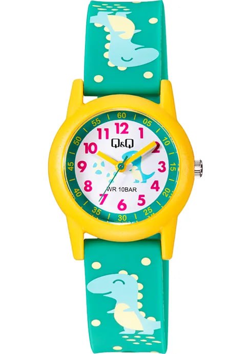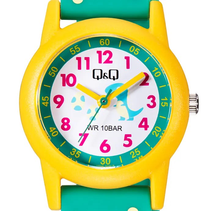 ساعت مچی کیو اند کیو V22A-023VY بچگانه: دوام ۱۰۰ متری و طراحی جذاب دایناسوری